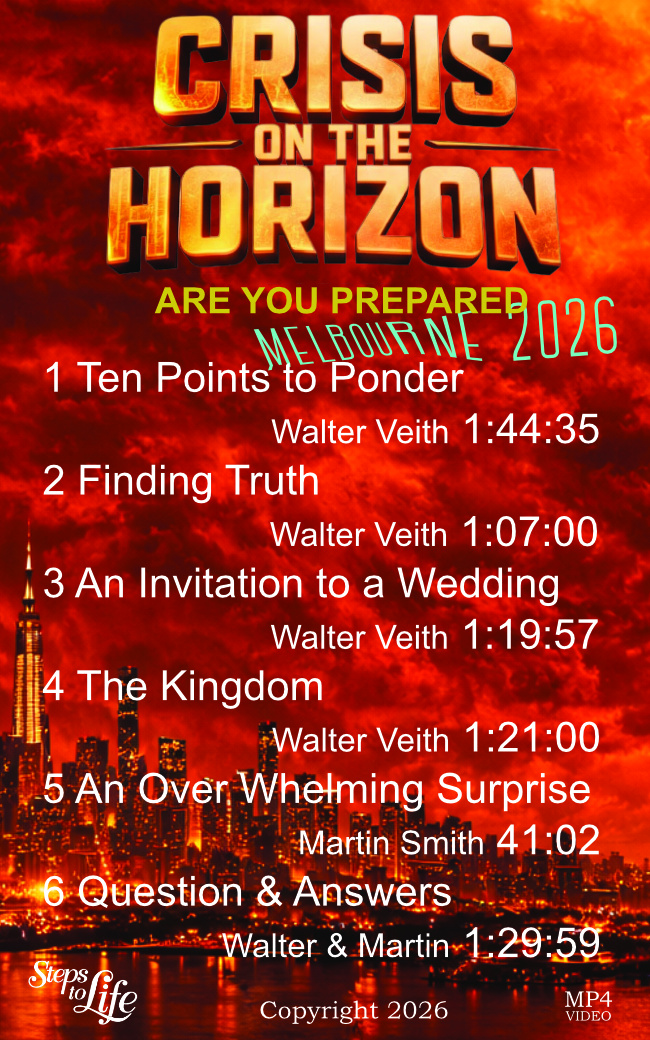 The recordings from Walter Veith's 2026 series in Melbourne. Topics include: